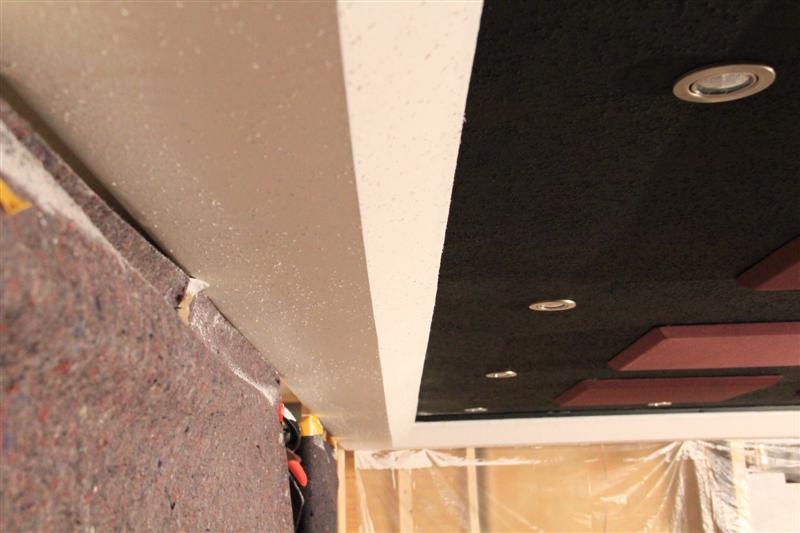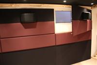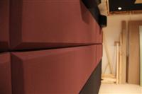 Im Frontbereich ist ein Deckenabsorber mit 10cm Basotect verbaut und mit Akustikstoff verkleidet.